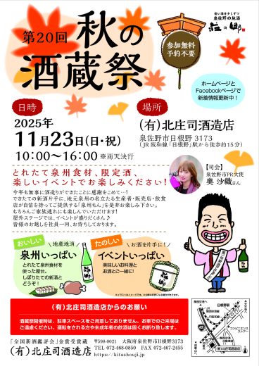 【告知】11月23日(日祝)「第20回 秋の酒蔵祭」