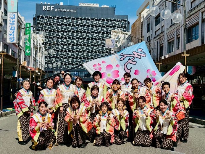 鳴子の音を響かせよう、よさこいを広めようをコンセプトに仲良く楽しく練習しています。少人数ですが、精一杯躍らせていただきます。一緒に踊ってくれるメンバーも大募集中です。